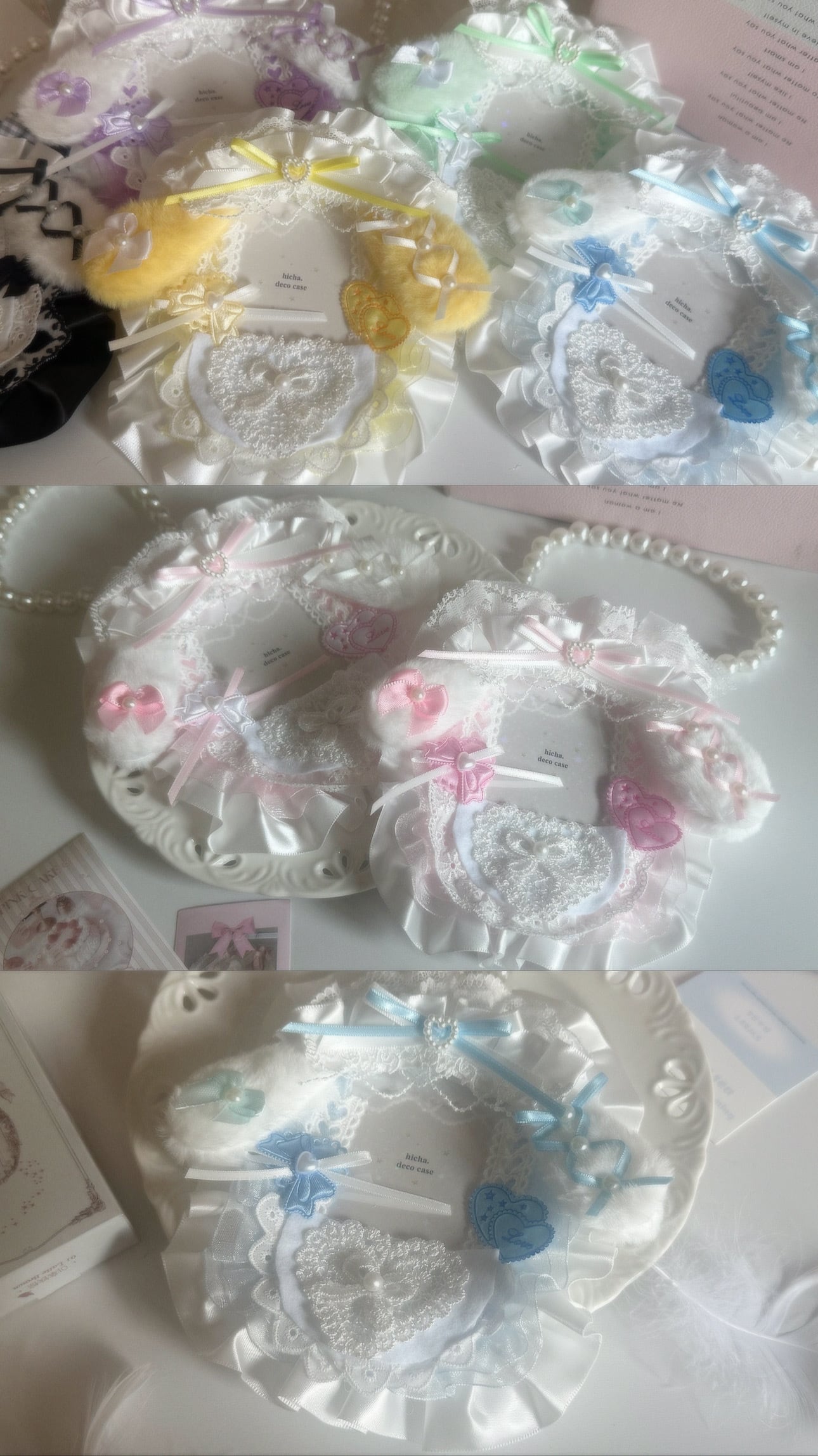 繊細なレースとフリルで、天使のモチーフをぎゅっと詰め込んだトレカケースです。 純白を基調に、淡い色のリボンや小さなお花をあしらい、大切なトレカを天使がそっと包み込むようなデザインに仕上げました。 イベントやお出かけ、ディスプレイ用にもおすすめです。 ひとつひとつ心を込めて制作しておりますため、 レースや装飾の配置には個体差がございます。