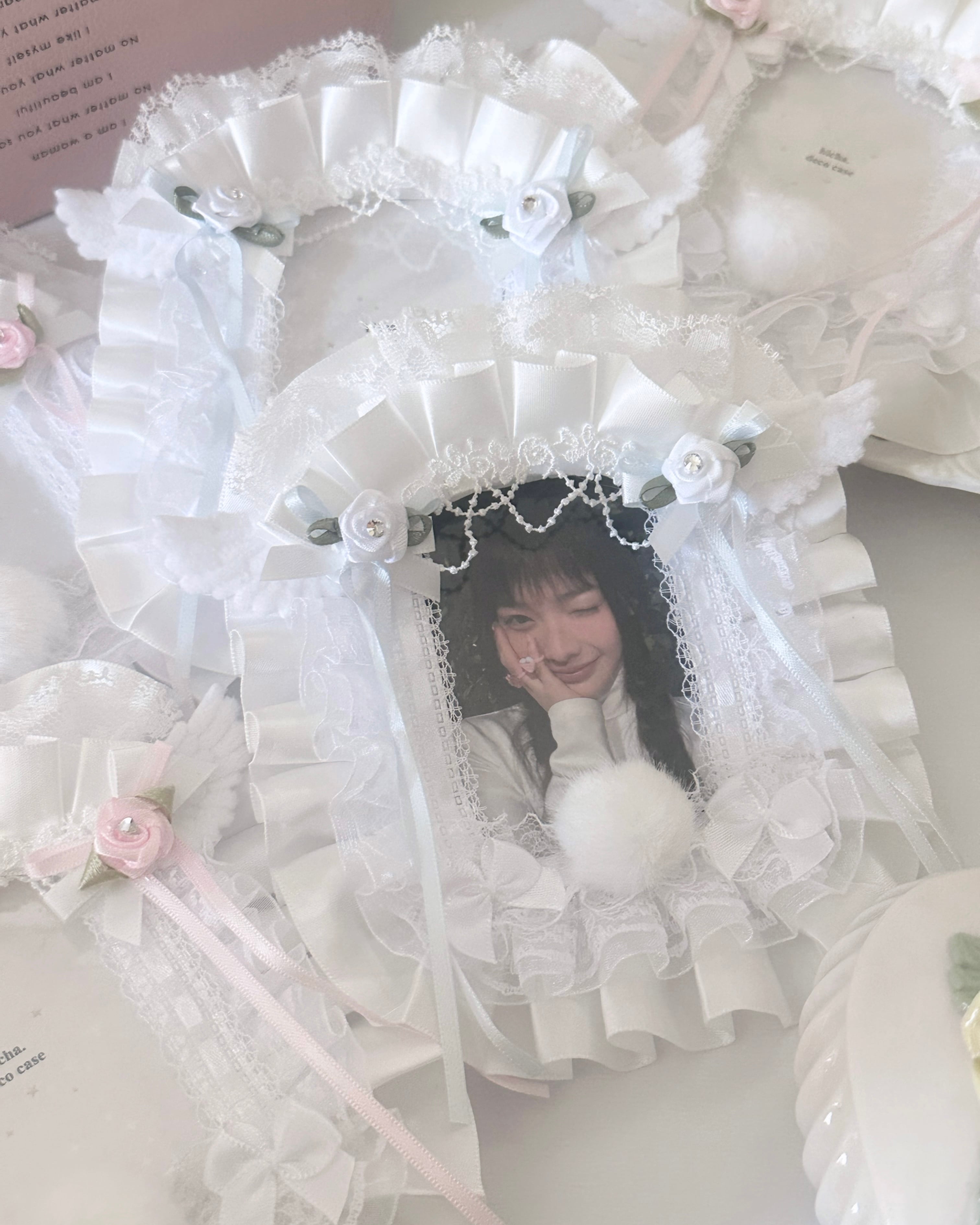 繊細なレースとフリルで、天使のモチーフをぎゅっと詰め込んだトレカケースです。